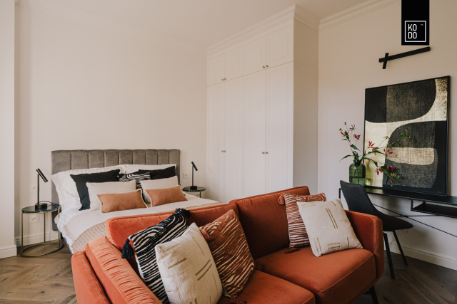Przy aranżacji tego wnętrza szczególny nacisk położono na podkreśleniu elegancji starej kamienicy i zachowaniu oryginalnych, architektonicznych elementów z jednoczesnym wprowadzaniem nowoczesnych akcentów.